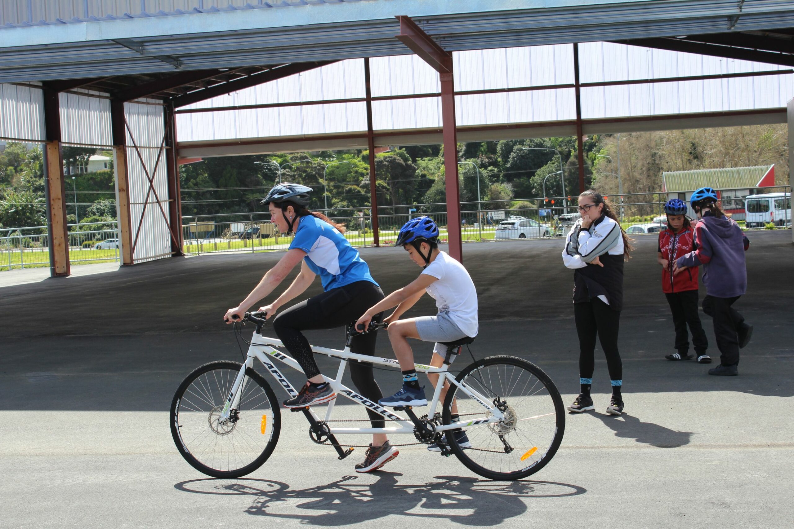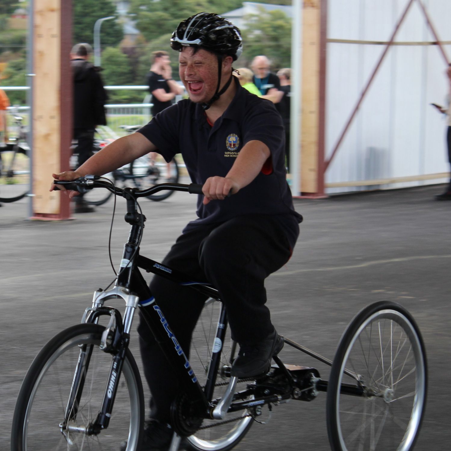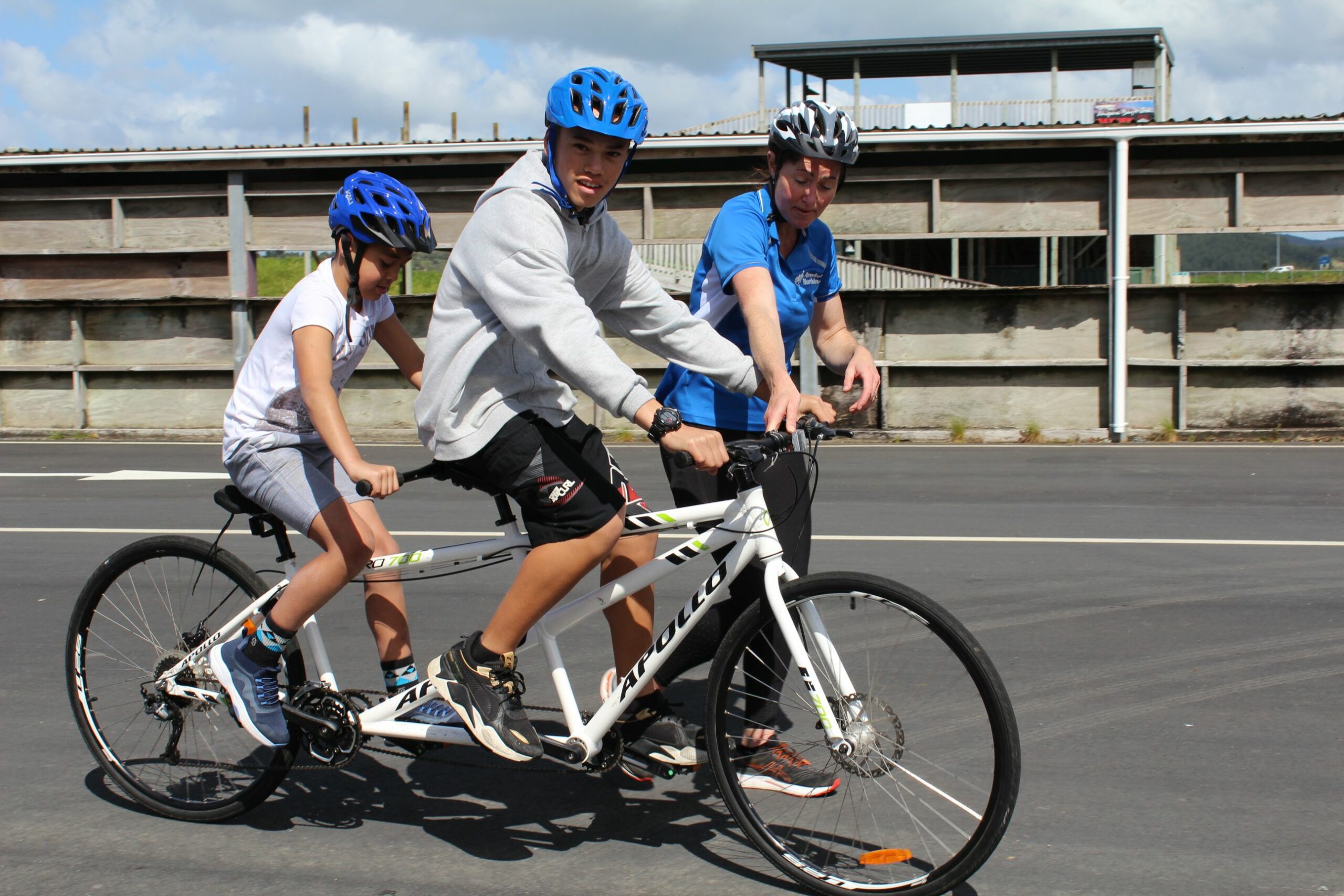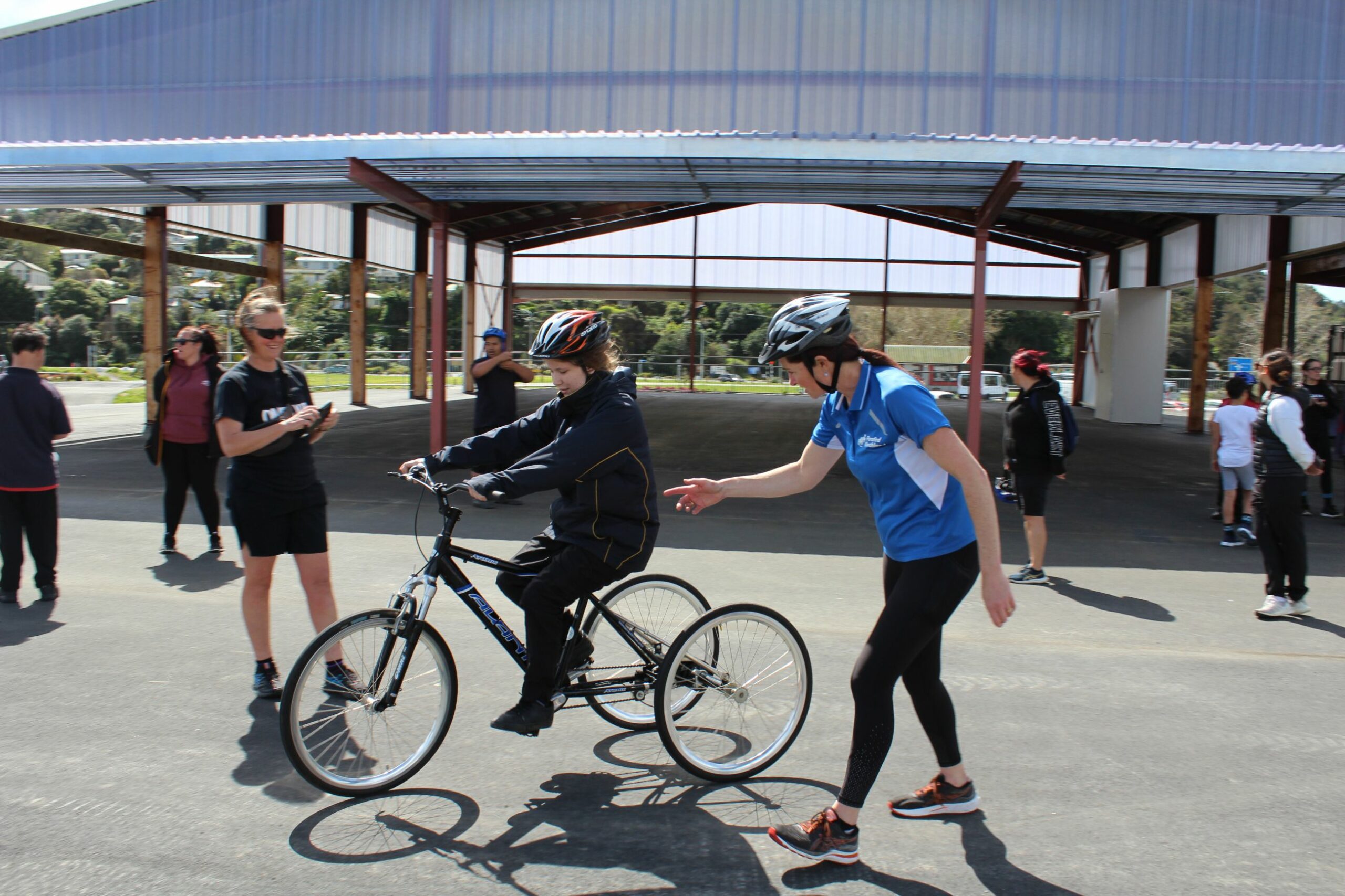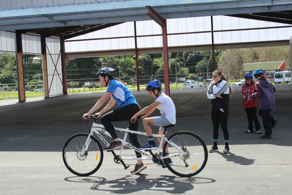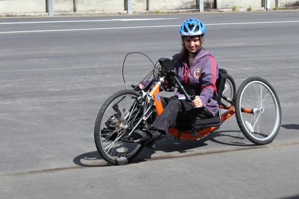 Parafed Northland had a group of students over from Dargaville and they were all having a go on the equipment. Trikes, tandems, and handcycles – all quite large specialist equipment. The students were having a fantastic time. Basic skills could be mastered first on the flat area, and then a few laps of the Circuit Track allowed them to get a sense of speed and test out their fitness.