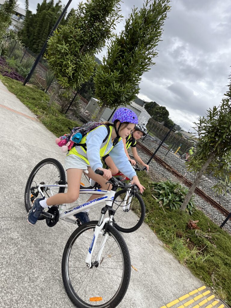 St Francis Xavier School road down to the Town Basin from school via the Kamo Shared Path dressed in their superhero costumes. Batman led them down to the canopy bridge where they met up with the rest of the walk participants, including emergency response vehicles. The students grabbed a sausage and then road ahead of the walkers around the loop before heading back up the hill to school.