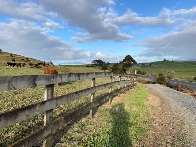 The trail passes through farmland, with views of Mt Manaia at Whangarei Heads when traveling towards the village and glimpses of the estuary and Bream Bay.